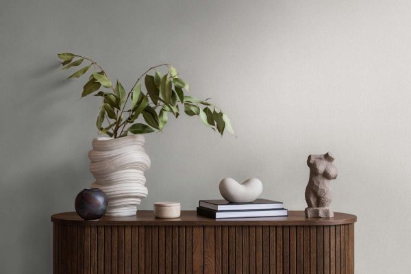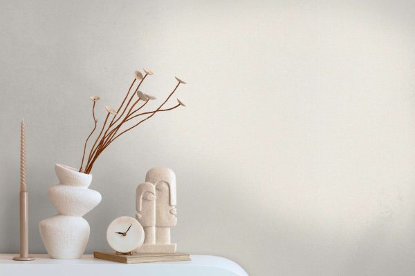 Estilo: Papel pintado liso texturado en color crema.