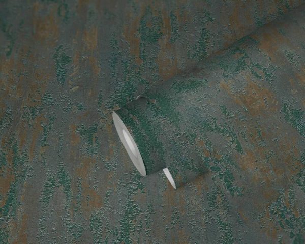 Medidas: 10,05 m x 0,53 m. Case: 64 cm (straight match). Calidad: Tejido no tejido. Estilo: Papel pintado liso efecto hormigón en color verde óxido.