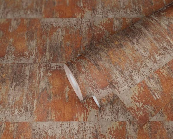 Medidas: 10,05 m x 0,53 m. Case: 26 cm (straight match). Calidad: Tejido no tejido. Estilo: Papel pintado efecto óxido de estilo vintage en color naranja.