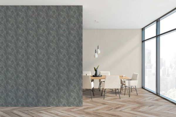 Papel pintado geométrico efecto madera natural gris con detalles metalizados. Medidas: 10,05 m x 0,53 m. Case: 64 / 32 cm (case salteado). Calidad: Tejido no Tejido. Estilo: Texturas naturales. Geométrico/Rayas.