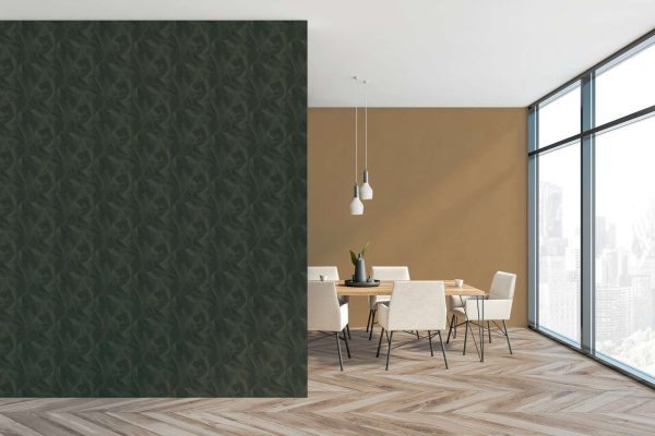 Papel pintado geométrico efecto madera natural verde oscuro con detalles metalizados. Medidas: 10,05 m x 0,53 m. Case: 64 / 32 cm (case salteado). Calidad: Tejido no Tejido.Estilo: Texturas naturales. Geométrico/Rayas.Acabado: Vinilo Texturado.