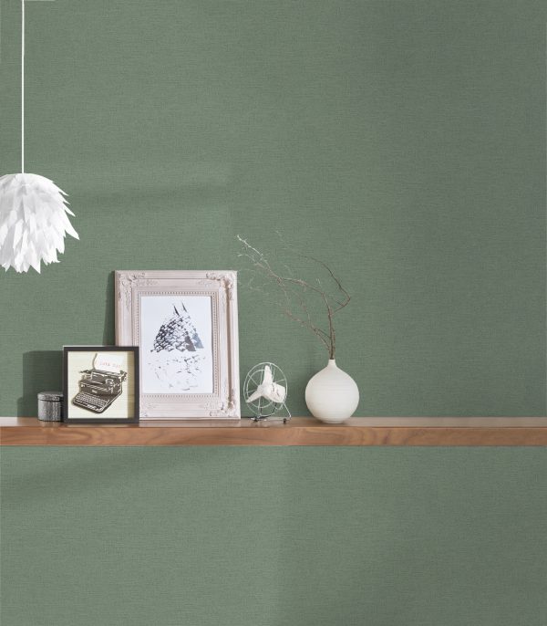 Medidas: 10,05 m x 0,53 m. Case: Sin case. Calidad: Tejido no tejido. Estilo: Papel pintado liso en color verde.