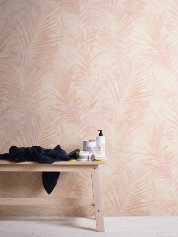Medidas: 10,05 m x 0,53 m. Case: 64 / 32 cm (offset match). Calidad: Tejido no tejido. Estilo: Papel pintado palmeras color rosa.