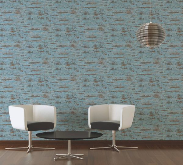 Medidas: 10,05 m x 0,53 m. Case: 64 / 32 cm (offset match). Calidad: Tejido no tejido. Estilo: Papel pintado ladrillos color azul efecto decapado.