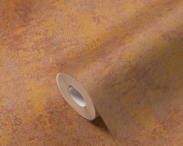 Medidas: 10,05 m x 0,53 m. Case: 64 / 32 cm (offset match). Calidad: Tejido no tejido. Estilo: Papel pintado liso texturado efecto oxidado en color naranja con detalles metalizados.