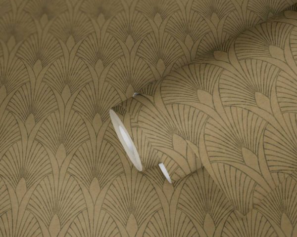 Medidas: 10,05 m x 0,53 m. Case: 18 cm (straight match). Calidad: Tejido no tejido. Estilo: Papel pintado geométrico diseño arcos estilo Art-Deco en color beige y detalles dorados.