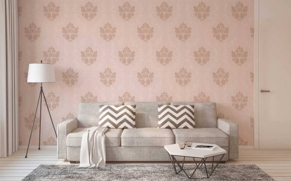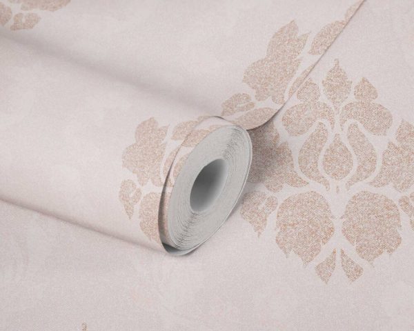 Medidas: 10,05 m x 0,53 m. Case: 64 cm (straight match). Calidad: Tejido no tejido. Estilo: Papel pintado ornamento barroco en color rosa.