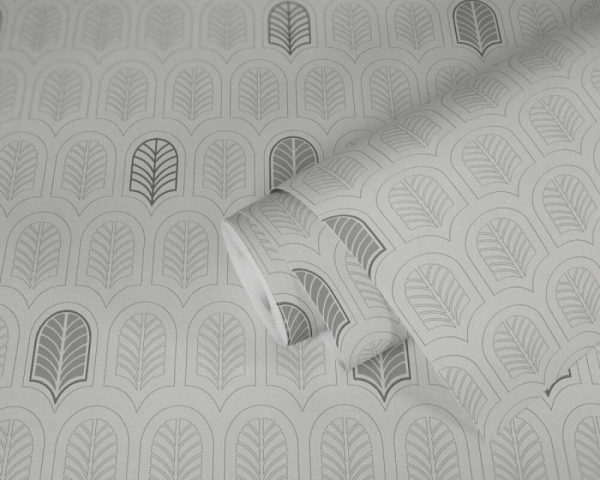 Medidas: 10,05 m x 0,53 m. Case: 53 cm (straight match). Calidad: Tejido no tejido. Estilo: Papel pintado geométrico arcos estilo Art-Deco en color gris/crema.