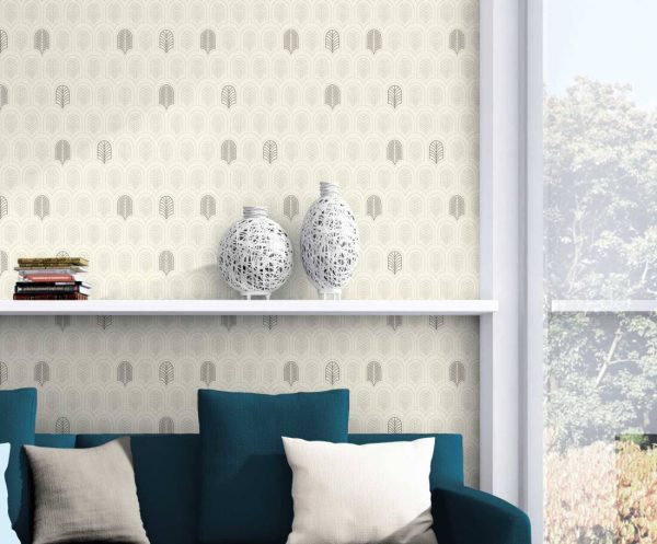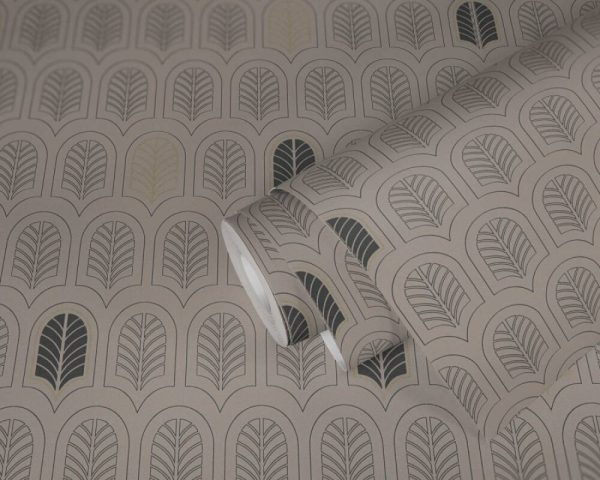 Medidas: 10,05 m x 0,53 m. Case: 53 cm (straight match). Calidad: Tejido no tejido. Estilo: Papel pintado geométrico arcos estilo Art-Deco en color gris/beige.