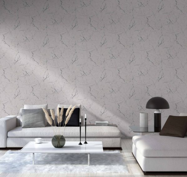 Medidas: 10,05 m x 0,53 m. Case: 64 / 32 cm (offset match). Calidad: Tejido no tejido. Estilo: Papel pintado efecto mármol en color gris con la veta gris. Acabado brillante.