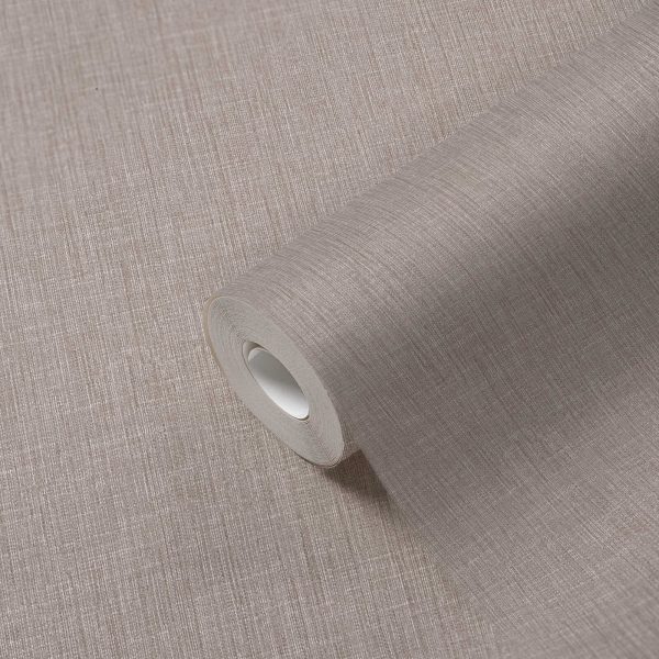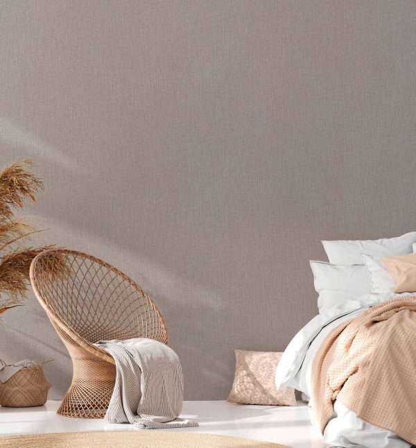 Papel pintado liso texturado efecto lino en color marrón topo. Medidas: 10,05 m x 0,53 m. Case: sin case. Calidad: Tejido no Tejido.Estilo: Minimalista/Lisos.Acabado: Vinilo Texturado.