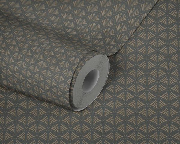 Medidas: 10,05 m x 0,53 m. Case: 5 cm (straight match). Calidad: Tejido no tejido. Estilo: Papel pintado geométrico estilo Art-Deco en color negro y dorado.