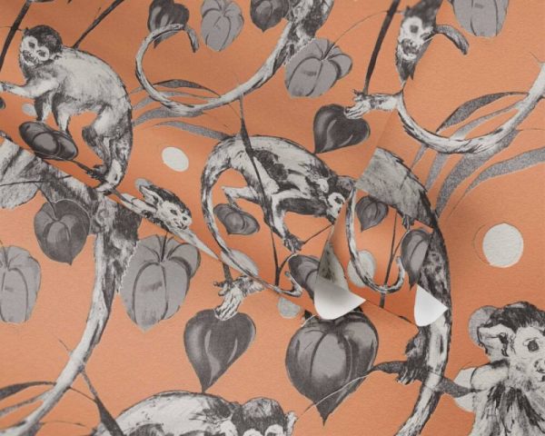 Medidas: 10,05 m x 0,53 m. Case: 32 cm (straight match). Calidad: Tejido no tejido. Estilo: Papel pintado diseño mono capuchino en color marrón y gris.