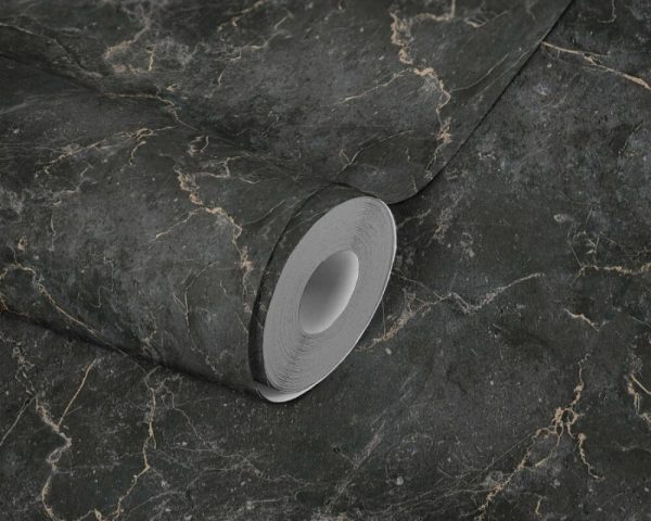 Medidas: 10,05 m x 0,53 m. Case: 53 / 26 cm (offset match). Calidad: Tejido no tejido. Estilo: Papel pintado efecto mármol en color negro. Acabado brillante.