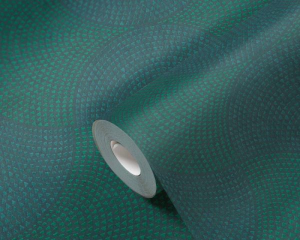 Medidas: 10,05 m x 0,53 m. Case: 53 cm (straight match). Calidad: Tejido no tejido. Estilo: Papel pintado geométrico arcos estilo Art-Deco en color verde.