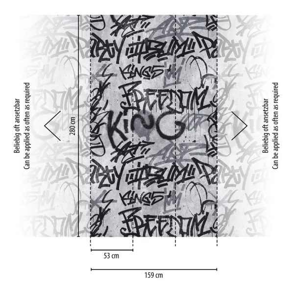 Medidas: 1,59 m x 2,80 m. Case: Sin case. Calidad: Tejido no tejido. Estilo: Mural grafitti.