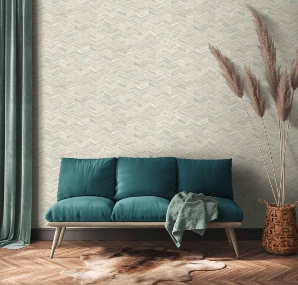 Medidas: 10,05 m x 0,53 m. Case: 64 / 32 cm (offset match). Calidad: Tejido no tejido. Estilo: Papel pintado geométrico diseño espiga en color gris/crema.
