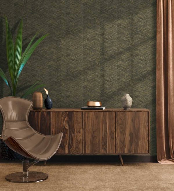 Medidas: 10,05 m x 0,53 m. Case: 64 / 32 cm (offset match). Calidad: Tejido no tejido. Estilo: Papel pintado geométrico diseño espiga en color marrón/beige.