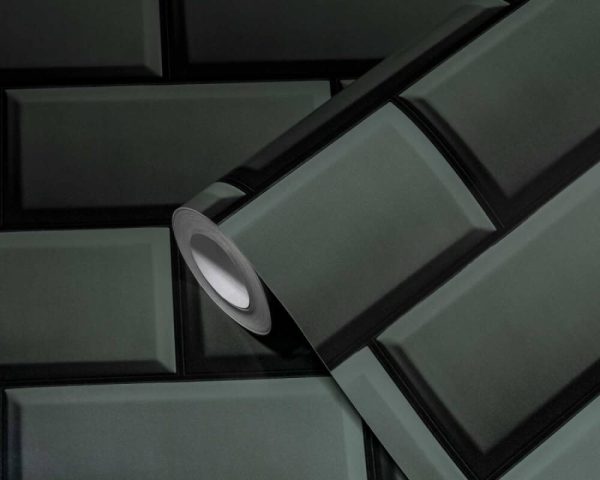 Medidas: 10,05 m x 0,53 m. Case: 53 / 18 cm (offset match). Calidad: Tejido no tejido. Estilo: Papel pintado diseño azulejo en color negro. Acabado brillante.