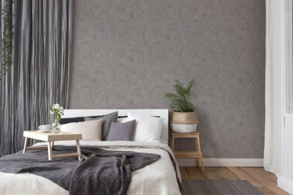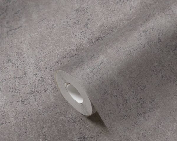 Estilo: Papel pintado efecto yeso-cemento en color gris.