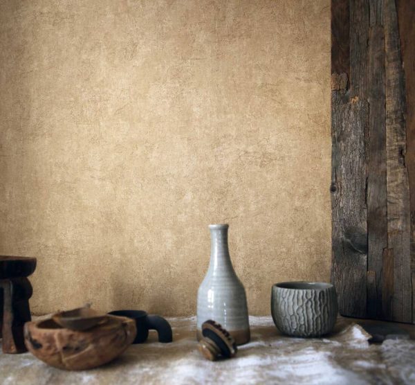Medidas: 10,05 m x 0,53 m. Case: Sin case. Calidad: Tejido no tejido. Estilo: Papel pintado efecto yeso-cemento en color marrón/beige.