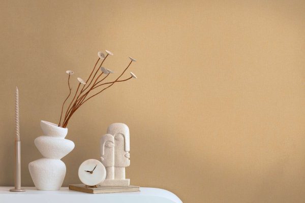 Medidas: 10,05 m x 0,53 m. Case: Sin case. Calidad: Tejido no tejido. Estilo: Papel pintado liso texturado en color ocre.