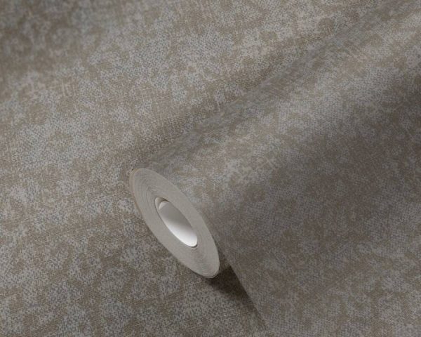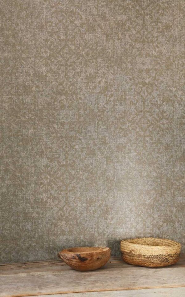 Medidas: 10,05 m x 0,53 m. Case: 53 cm (straight match). Calidad: Tejido no tejido. Estilo: Papel pintado diseño étnico en color gris/beige con detalles plateados.