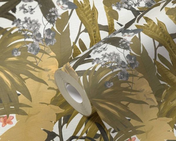 Medidas: 10,05 m x 0,53 m. Case: 64 / 32 cm (offset match). Calidad: Tejido no tejido. Estilo: Papel pintado diseño selva tropical efecto vintage en color verde/blanco/beige.
