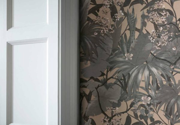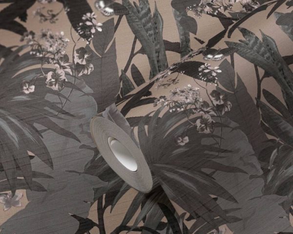 Medidas: 10,05 m x 0,53 m. Case: 64 / 32 cm (offset match). Calidad: Tejido no tejido. Estilo: Papel pintado diseño selva tropical efecto vintage en color beige/negro.