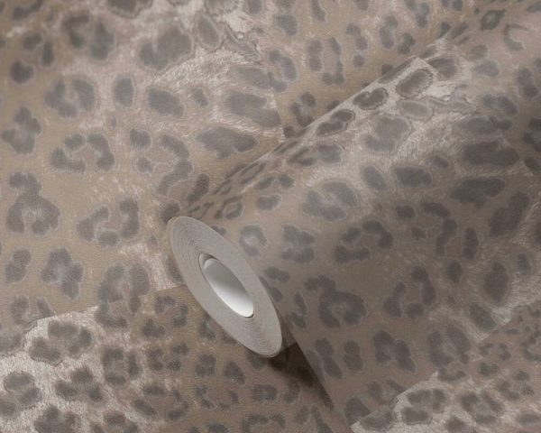 Medidas: 10,05 m x 0,53 m. Case: 64 / 32 cm (offset match). Calidad: Tejido no tejido. Estilo: Papel pintado animal- print (leopardo) en color gris/beige.