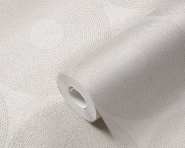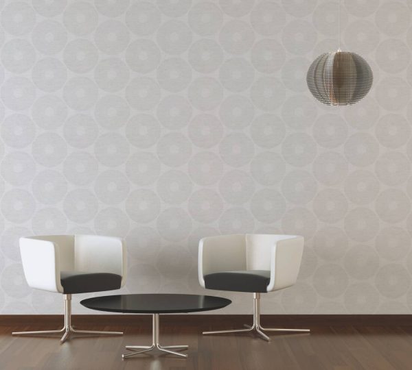 Medidas: 10,05 m x 0,53 m. Case: 64 cm (straight match). Calidad: Tejido no tejido. Estilo: Papel pintado geométrico diseño círculos en color blanco.