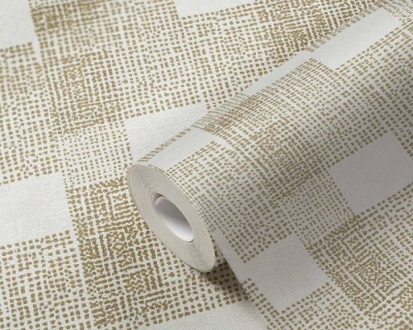 Medidas: 10,05 m x 0,53 m. Case: 64 cm (straight match). Calidad: Tejido no tejido. Estilo: Papel pintado geométrico en color blanco/dorado.