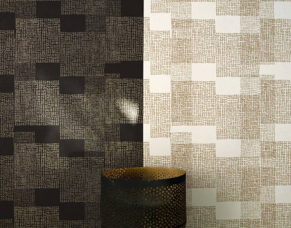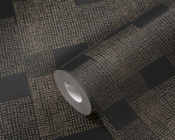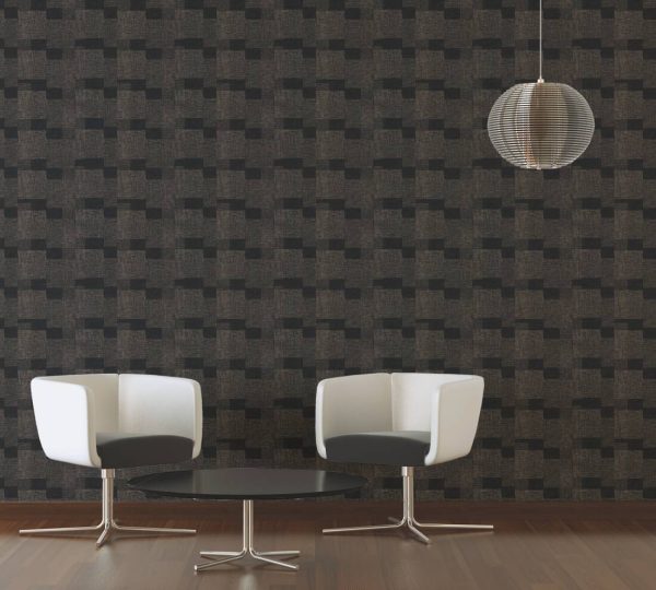 Medidas: 10,05 m x 0,53 m. Case: 64 cm (straight match). Calidad: Tejido no tejido. Estilo: Papel pintado geométrico en color negro/dorado.