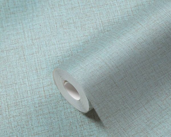 Medidas: 10,05 m x 0,53 m. Case: Sin case. Calidad: Tejido no tejido. Estilo: Papel pintado texturado efecto rafia en color azul turquesa.