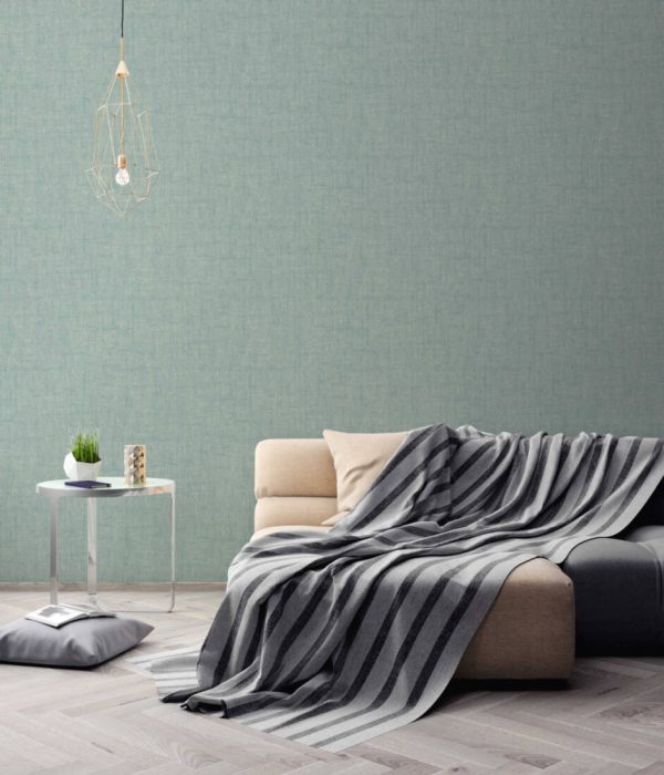 Medidas: 10,05 m x 0,53 m. Case: Sin case. Calidad: Tejido no tejido. Estilo: Papel pintado color verde aguamarina con detalles metalizados.