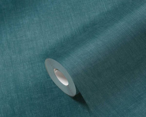 Medidas: 10,05 m x 0,53 m. Case: Sin case. Calidad: Tejido no tejido. Estilo: Papel pintado liso efecto lino en color azul petróleo.