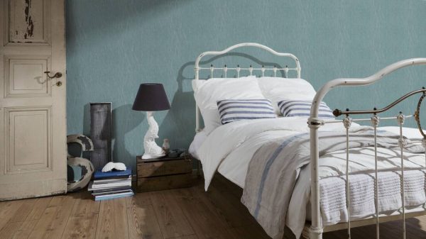 Medidas: 10,05 m x 0,53 m. Case: 64 / 32 cm (offset match). Calidad: Tejido no tejido. Estilo: Papel pintado jaspeado en verde turquesa.