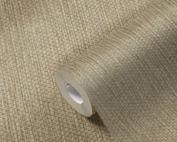 Medidas: 10,05 m x 0,53 m. Case: Sin case. Calidad: Tejido no tejido. Estilo: Papel pintado texturado efecto rafia en color verde caqui.