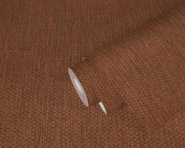 Medidas: 10,05 m x 0,53 m. Case: Sin case. Calidad: Tejido no tejido. Estilo: Papel pintado texturado efecto rafia en color marrón tierra.