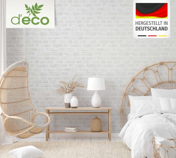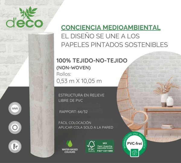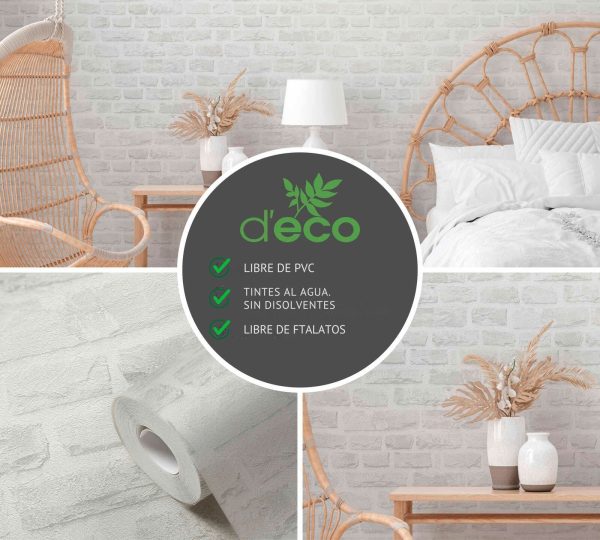 Medidas: 10,05 m x 0,53 m. Case: 64/32 cm (offset match). Calidad: Tejido no tejido. Estilo: papel pintado efecto ladrillo en color gris y blanco.