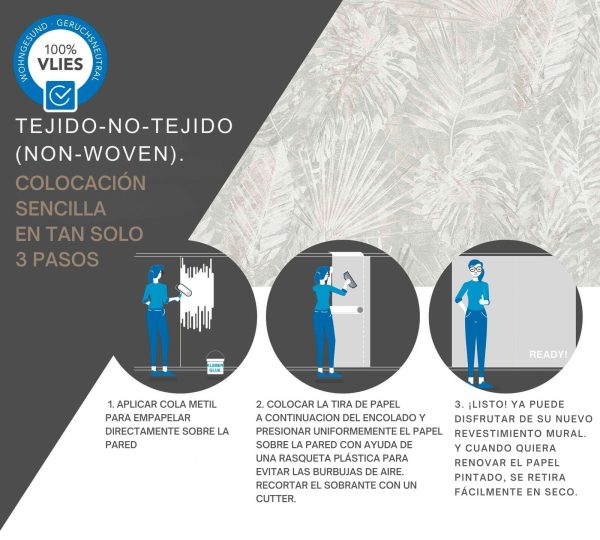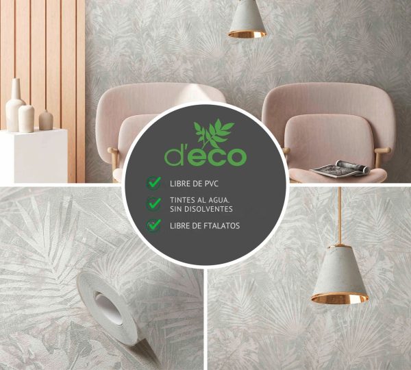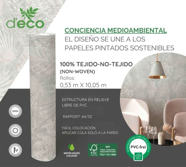 Medidas: 10,05 m x 0,53 m. Case: 64/32 cm (offset match). Calidad: Tejido no tejido. Estilo: Papel pintado palmeras. Estilo Floral. En color beige y gris.