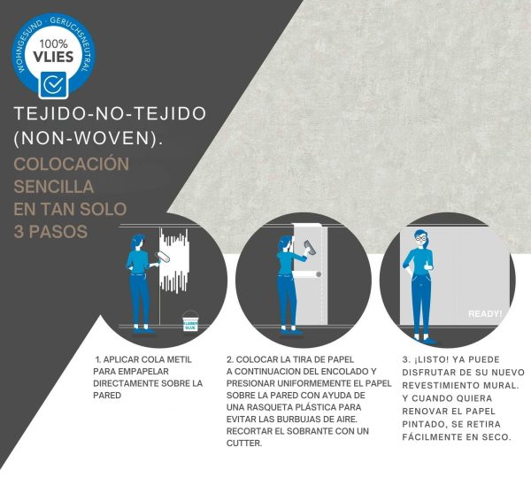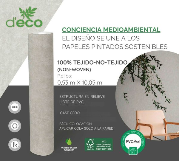 Medidas: 10,05 m x 0,53 m. Case: Sin case. Calidad: Tejido no tejido. Estilo: Papel pintado liso efecto hormigón en color gris topo.