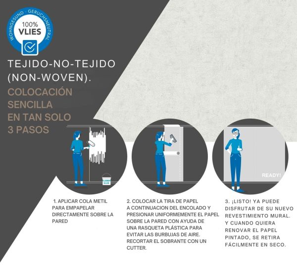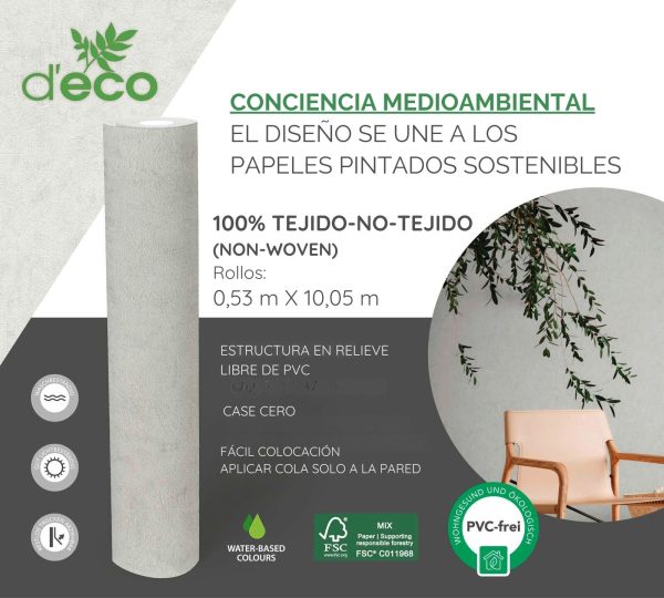 Medidas: 10,05 m x 0,53 m. Case: Sin case. Calidad: Tejido no tejido. Estilo: Papel pintado liso efecto hormigón en color gris.