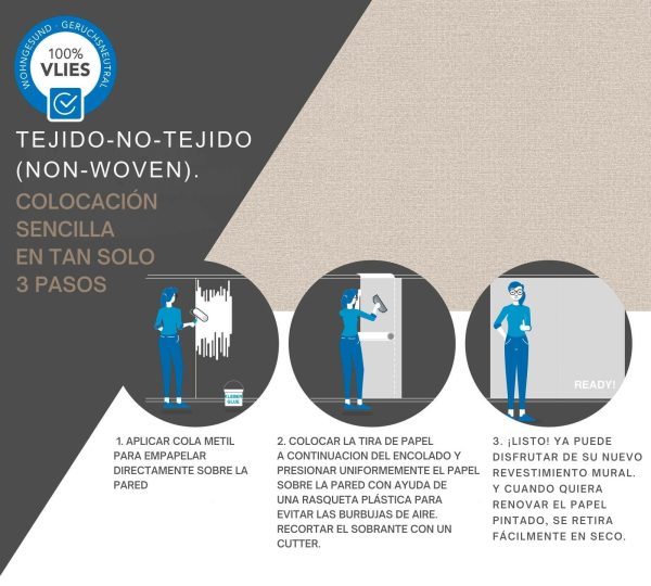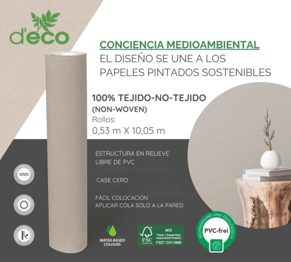 Medidas: 10,05 m x 0,53 m. Case: Sin case. Calidad: Tejido no tejido. Estilo: Papel pintado liso texturado en color beige, crema.
