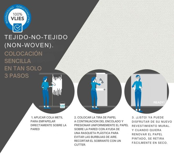 Medidas: 10,05 m x 0,53 m. Case: Sin case. Calidad: Tejido no tejido. Estilo: Papel pintado liso texturado en color blanco.