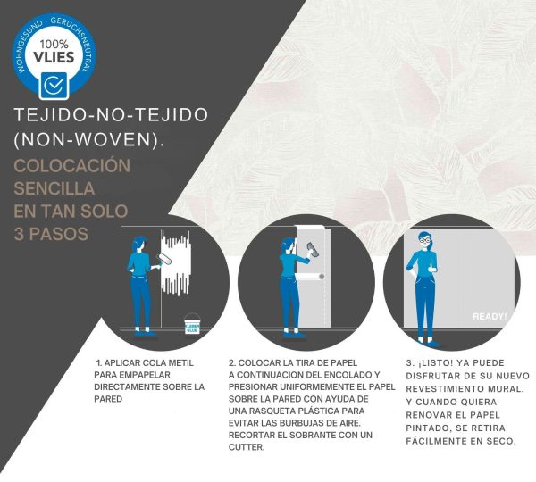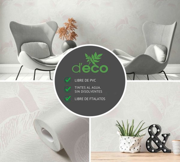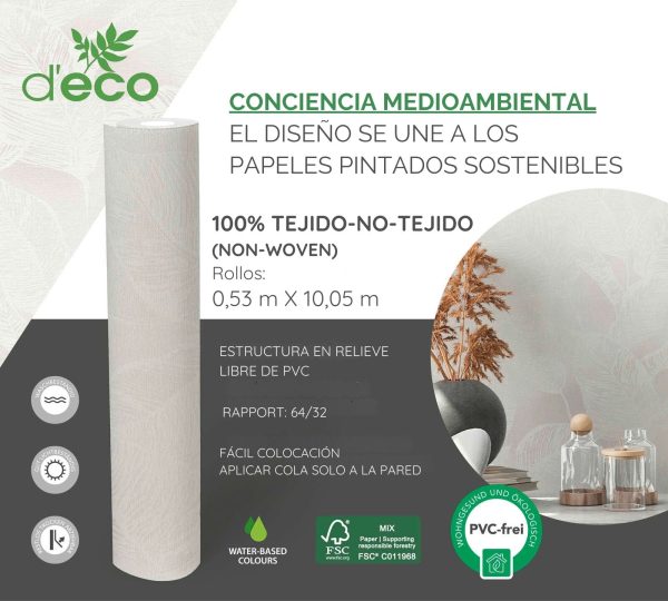 Medidas: 10,05 m x 0,53 m. Case: 64/32 cm (offset match). Calidad: Tejido no tejido. Estilo: Papel pintado hojas. Estilo Floral. En color blanco y gris.