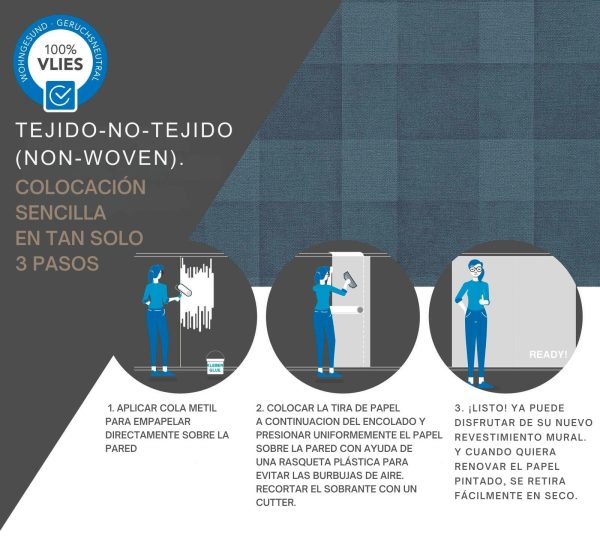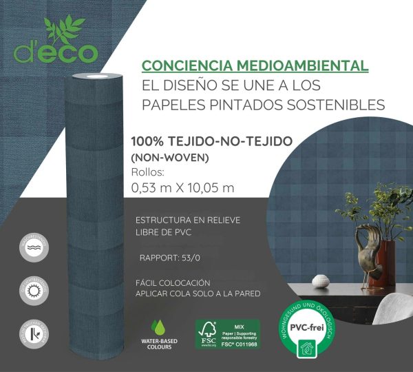 Medidas: 10,05 m x 0,53 m. Case: 53/0 cm (case libre). Calidad: Tejido no tejido. Estilo: papel pintado cuadros en color azul.