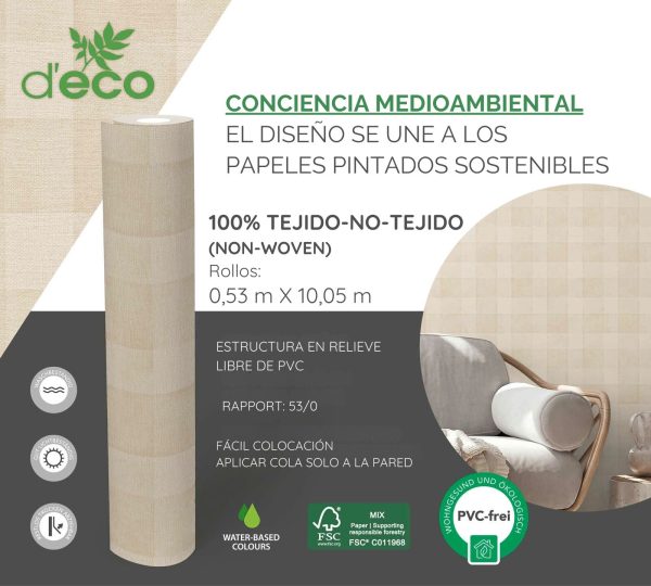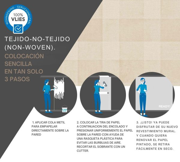Medidas: 10,05 m x 0,53 m. Case: 53/0 cm (case libre). Calidad: Tejido no tejido. Estilo: papel pintado cuadros en color beige y crema.