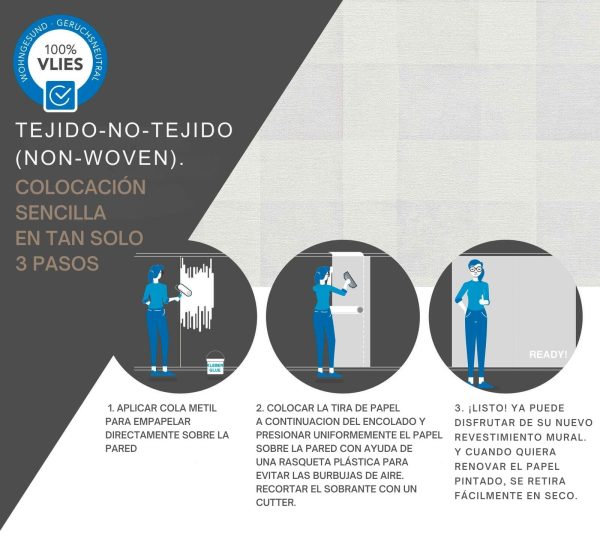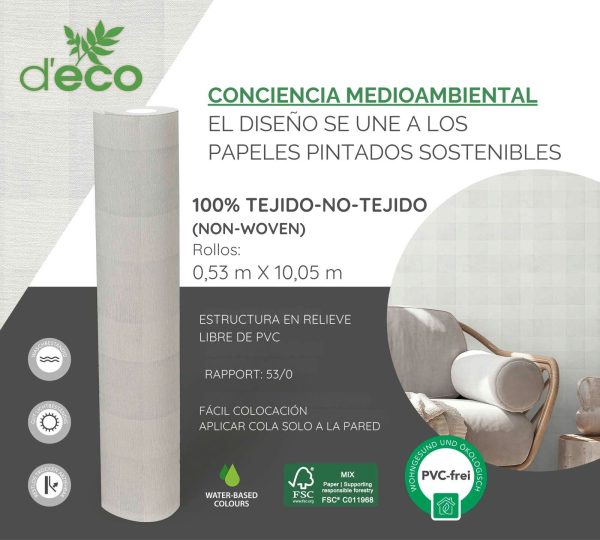 Medidas: 10,05 m x 0,53 m. Case: 53/0 cm (case libre). Calidad: Tejido no tejido. Estilo: papel pintado cuadros en color gris y blanco.