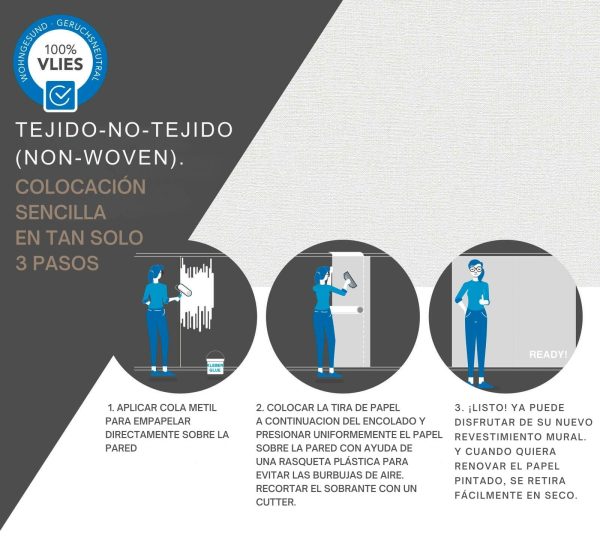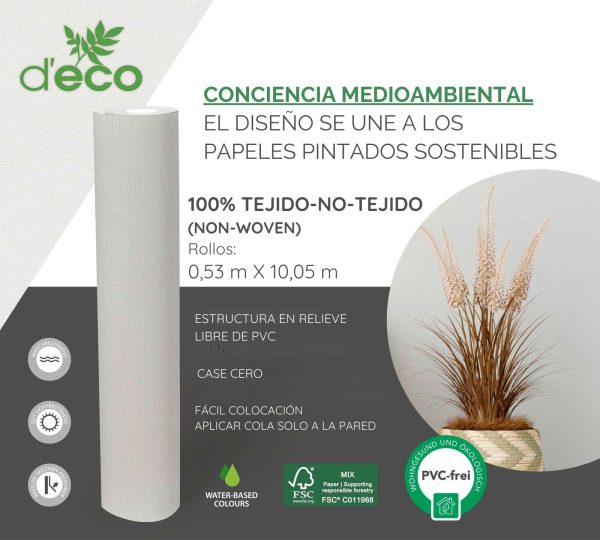 Medidas: 10,05 m x 0,53 m. Case: Sin case. Calidad: Tejido no tejido. Estilo: Papel pintado liso en color blanco.